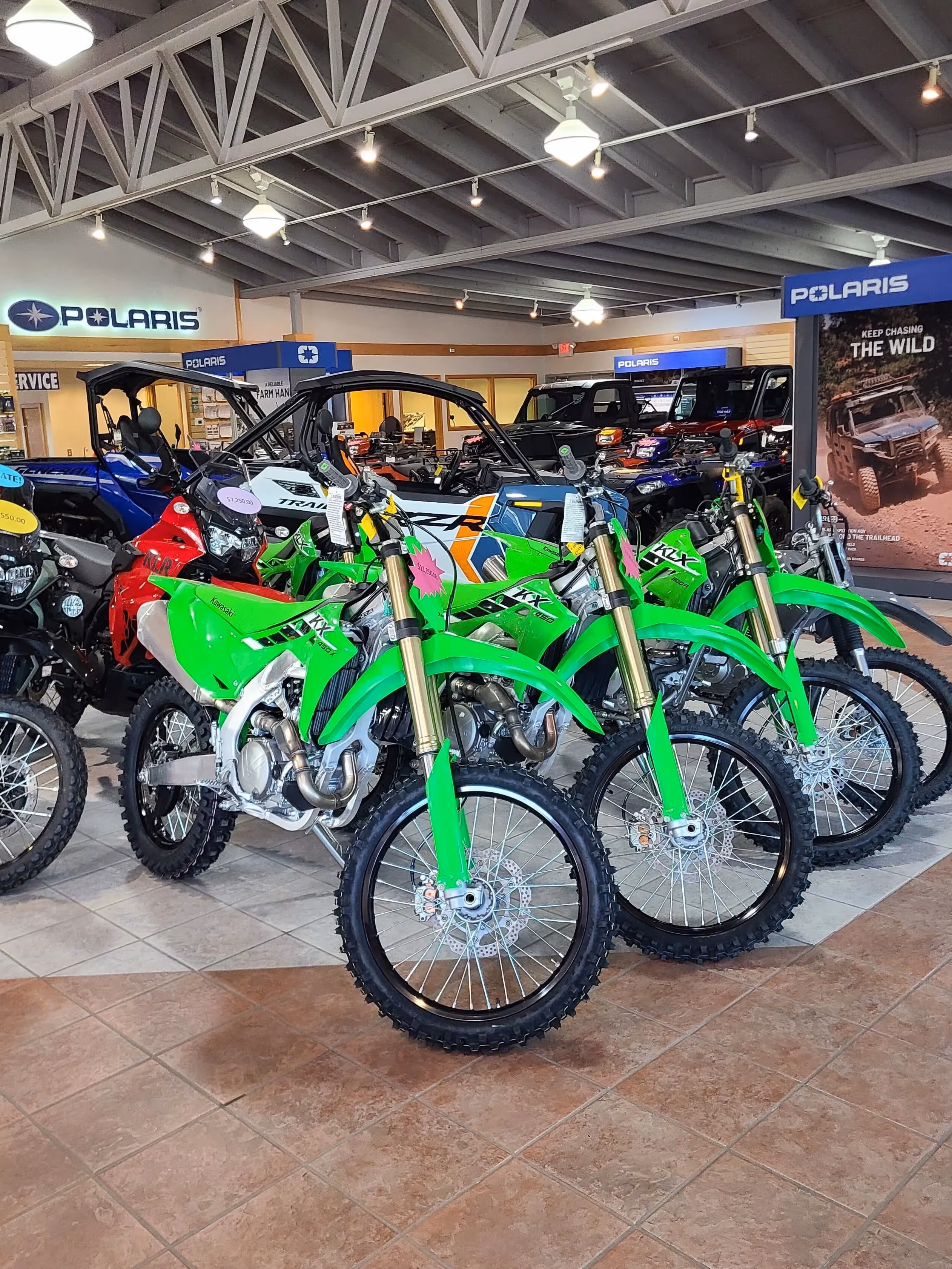 “We’ve always believed that slow, steady growth is better than dramatic peaks and valleys,” says Jeff. “It’s sustainable, and it keeps us rooted in the community.” The business has expanded its inventory to include Honda ATVs, Motorcycles, and Side by Sides, Polaris ATVs, Side by Sides, and Snowmobiles, as well as Kawasaki products. With a well-stocked parts department and a fully equipped service center, the dealership covers every aspect of the powersports experience.